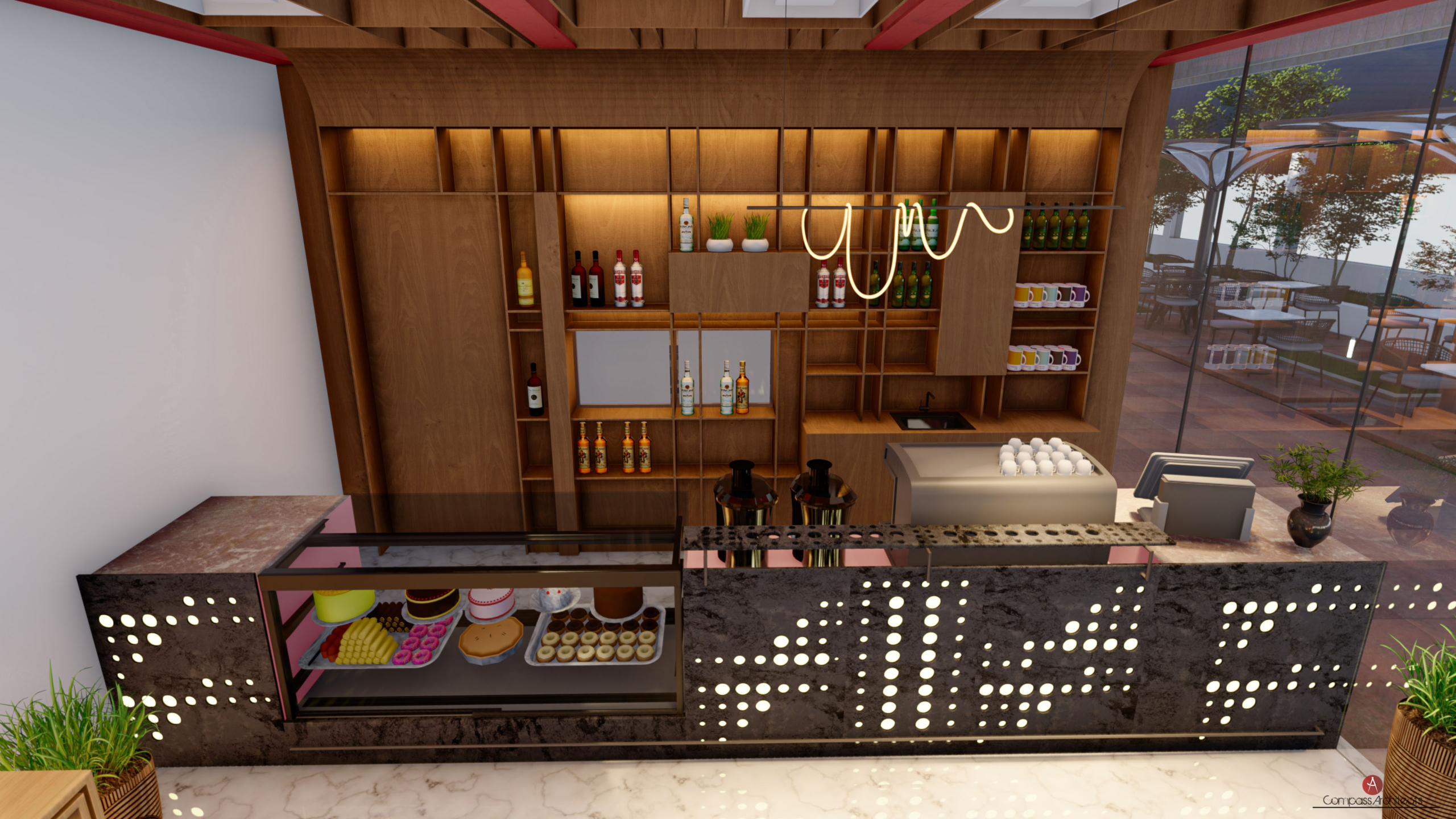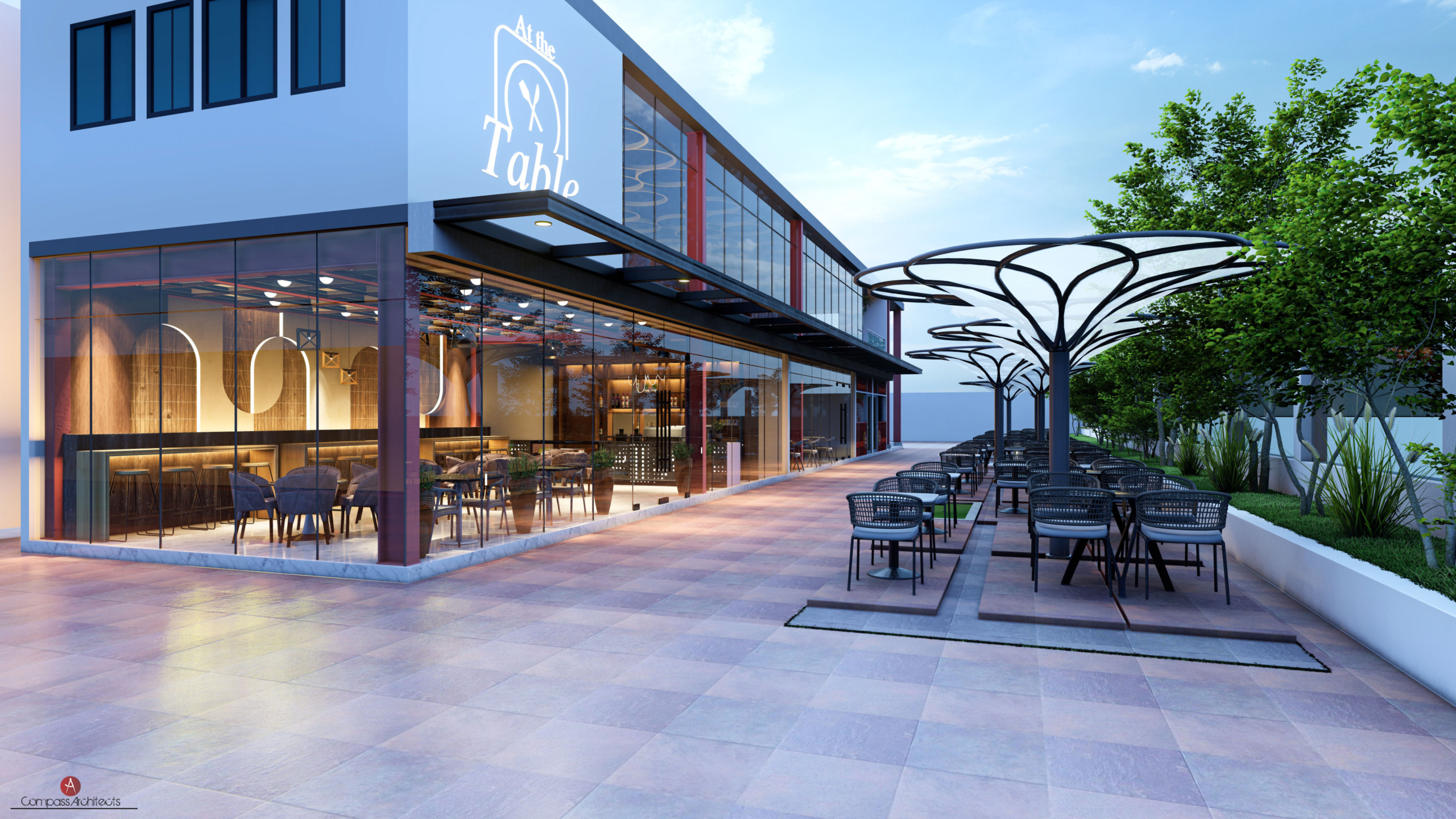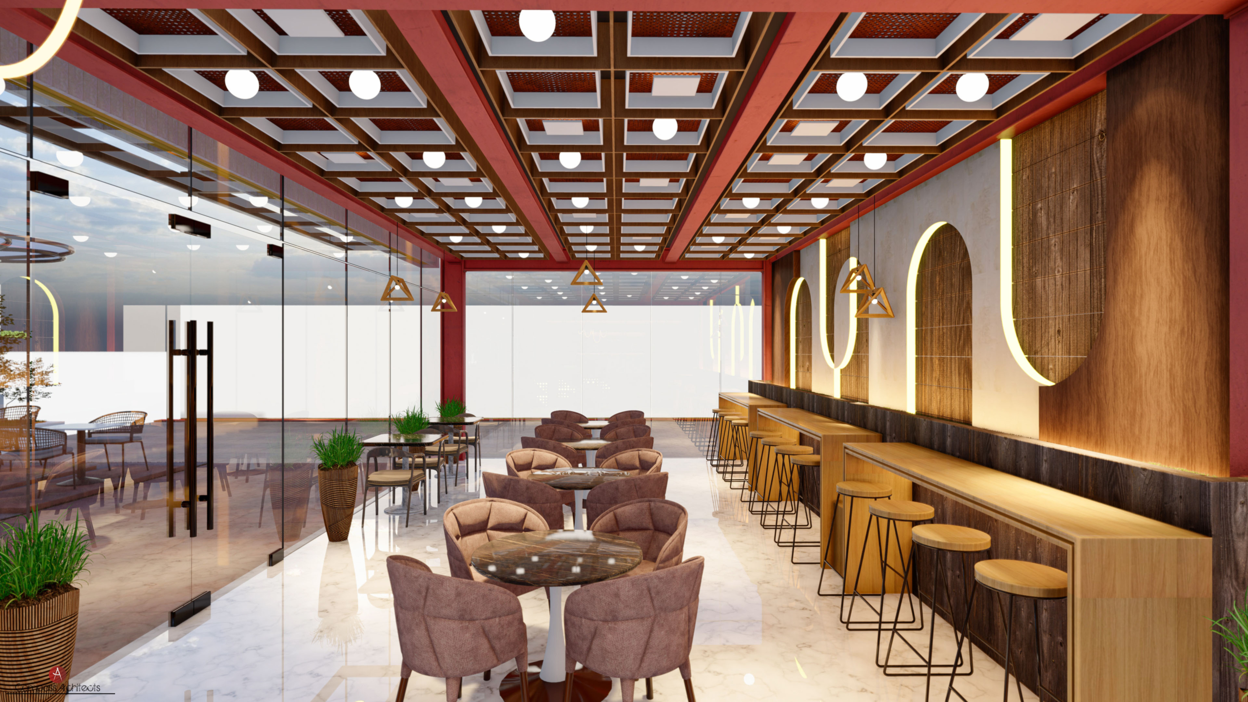 This restaurant design seamlessly blends indoor and outdoor spaces, creating a welcoming atmosphere that connects nature with modern luxury. Inside, the warm wood tones and elegant marble accents offer a refined, cozy setting for guests. The unique seating arrangement adds a touch of creativity, inviting diners to relax in comfort. Stepping outside, the outdoor seating area is carefully integrated into the environment with stylish, modern canopies and lush greenery, enhancing the overall experience. The relationship between the indoor elegance and the outdoor freshness provides a harmonious dining experience, perfect for any occasion.